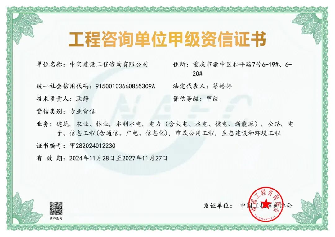 榮耀再續(xù) 賦能增效|中實(shí)咨詢獲批工程咨詢單位甲級(jí)資信